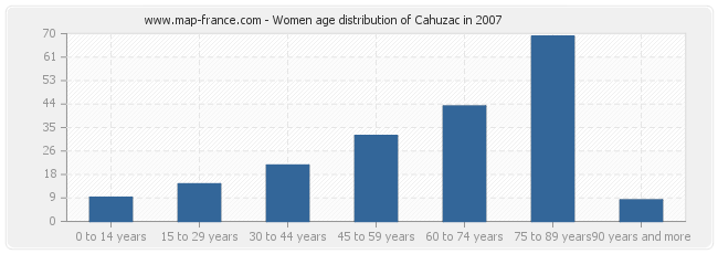 - Cahuzac women inhabitants from 75 to 90 years : 69