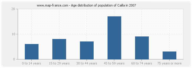 - Population of Cailla from 45 to 59 years : 17 inhabitants