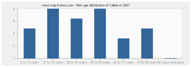 - Callian men inhabitants from 15 to 29 years : 6