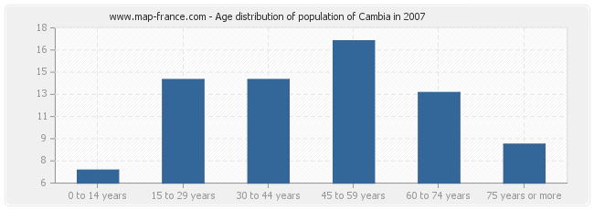 - Population of Cambia from 45 to 59 years : 17 inhabitants