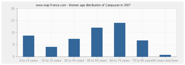 - Campuzan women inhabitants from 60 to 74 years : 21