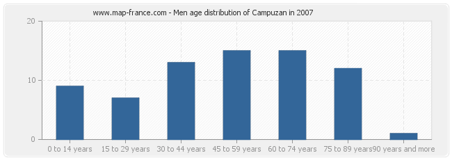 - Campuzan men inhabitants from 45 to 59 years : 15