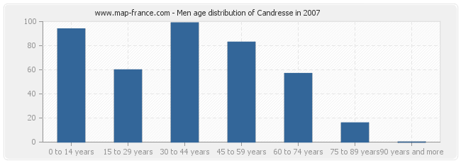 - Population of Candresse from 30 to 44 years : 148 inhabitants