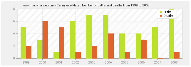 Canny-sur-Matz : births and deaths from 1999 to 2008