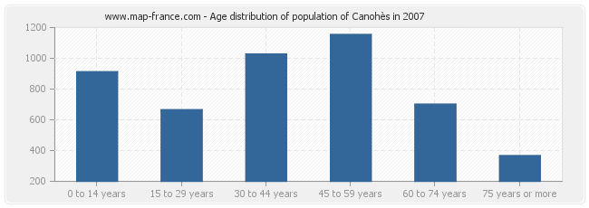 - Population of Canohès from 75 years or more : 300 inhabitants
