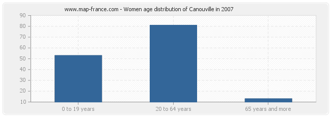 - Canouville women inhabitants from 0 to 19 years : 53