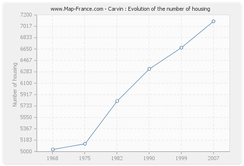 The number of housing of Carvin was 7 097 in 2007, 6 672 in 1999, 6 329 in 1990, 5 813 in 1982, 5 125 in 1975 and 5 035 in 1968.