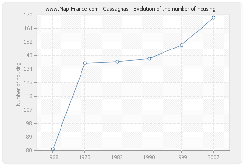 The number of housing of Cassagnas was 168 in 2007, 150 in 1999, 141 in 1990, 139 in 1982, 138 in 1975 and 81 in 1968.