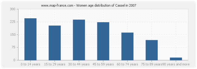 Women population distribution of Cassel by age in 2007 :