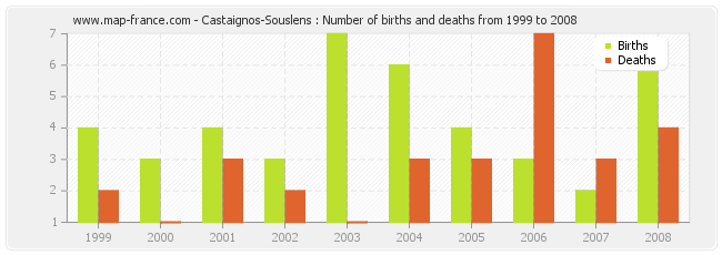 Castaignos-Souslens : births and deaths from 1999 to 2008