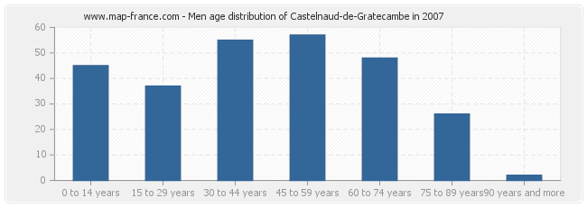 - Castelnaud-de-Gratecambe men inhabitants from 45 to 59 years : 57