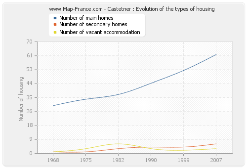 The number of housing of Castetner was 70 in 2007, 58 in 1999, 51 in 1990, 46 in 1982, 38 in 1975 and 32 in 1968.