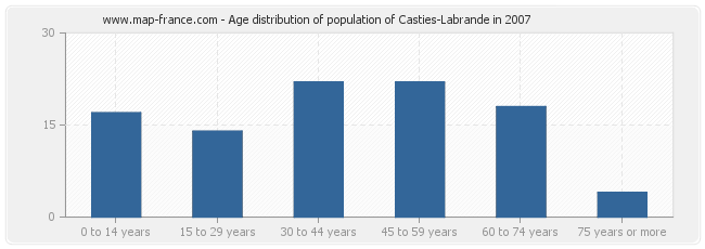 - Population of Casties-Labrande from 30 to 44 years : 22 inhabitants