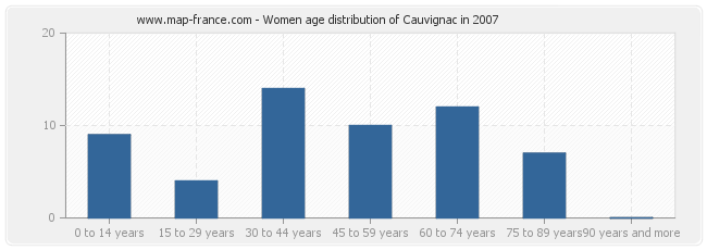 - Cauvignac women inhabitants from 30 to 44 years : 14
