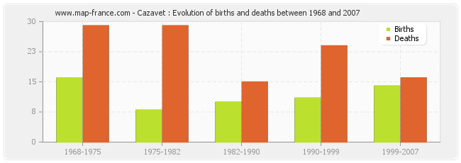 Cazavet : evolution of births and deaths from 1968 to 2007