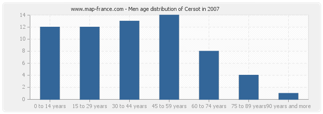 - Population of Cersot from 45 to 59 years : 16 inhabitants