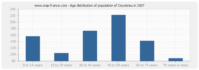 - Population of Ceyzérieu from 45 to 59 years : 222 inhabitants