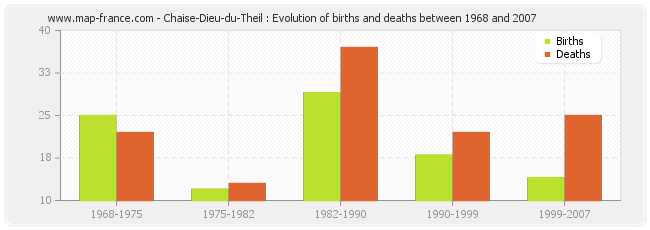 Chaise-Dieu-du-Theil : evolution of births and deaths from 1968 to 2007