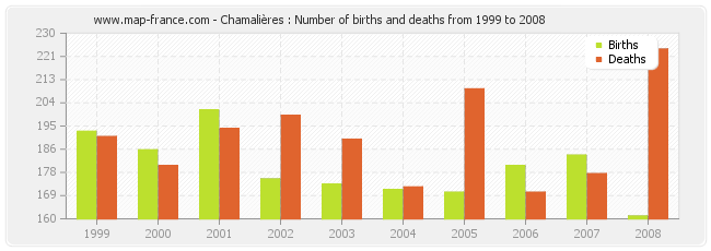 Chamalières : evolution of births and deaths from 1968 to 2007