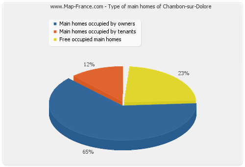 - Number of main homes of Chambon-sur-Dolore occupied by owners : 53 - Number of main homes of Chambon-sur-Dolore occupied by tenants : 10 - Number of main homes of Chambon-sur-Dolore occupied free of charge : 19 |