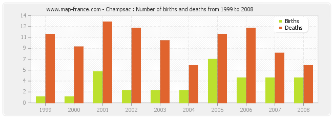 Champsac : births and deaths from 1999 to 2008