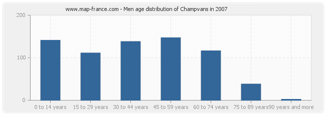 - Men inhabitants Champvans in 2007 were 691 - Women inhabitants in 2007 were 710