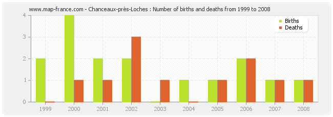 Chanceaux-près-Loches : births and deaths from 1999 to 2008