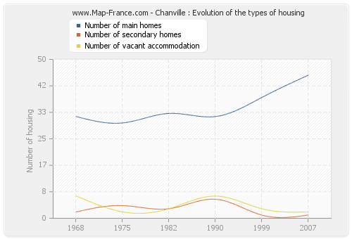 The number of housing of Chanville was 48 in 2007, 42 in 1999, 45 in 1990, 39 in 1982, 36 in 1975 and 41 in 1968.