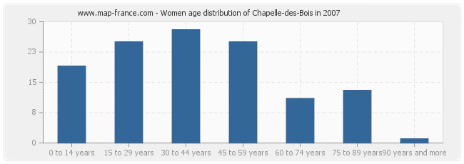 - Chapelle-des-Bois women inhabitants from 30 to 44 years : 28