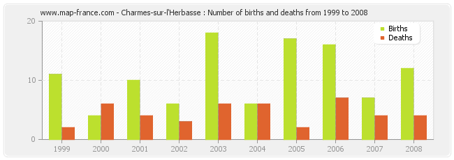 Charmes-sur-l'Herbasse : births and deaths from 1999 to 2008