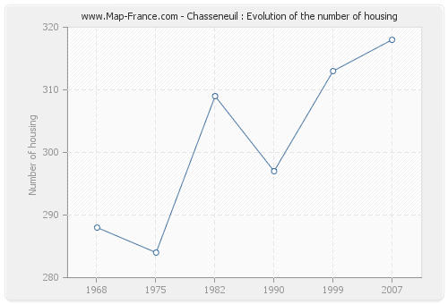 The number of housing of Chasseneuil was 318 in 2007, 313 in 1999, 297 in 1990, 309 in 1982, 284 in 1975 and 288 in 1968.