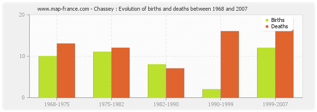 Chassey : evolution of births and deaths from 1968 to 2007