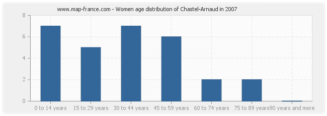 Women population distribution of Chastel-Arnaud by age in 2007 :