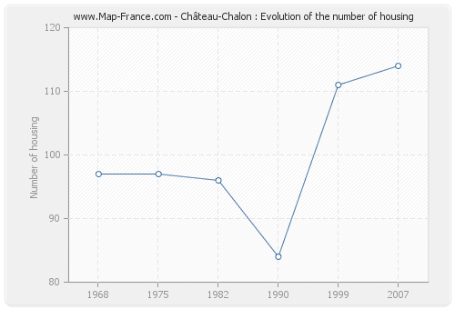 The number of housing of Château-Chalon was 114 in 2007, 111 in 1999, 84 in 1990, 96 in 1982, 97 in 1975 and 97 in 1968.