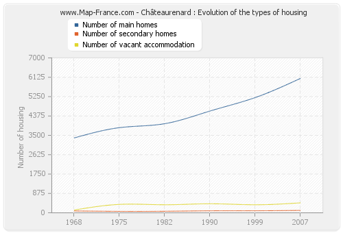 The number of housing of Châteaurenard was 6 622 in 2007, 5 658 in 1999, 5 094 in 1990, 4 457 in 1982, 4 292 in 1975 and 3 592 in 1968.