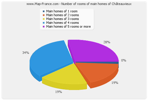 - Number of main homes of Châteauvieux of 1 room : 0 - Number of main homes of Châteauvieux of 2 rooms : 6 - Number of main homes of Châteauvieux of 3 rooms : 6 - Number of main homes of Châteauvieux of 4 rooms : 6 - Number of main homes of Châteauvieux of 5 rooms and more : 9 |