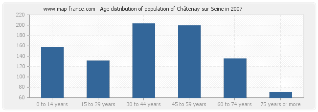 - Population of Châtenay-sur-Seine from 45 to 59 years : 199 inhabitants