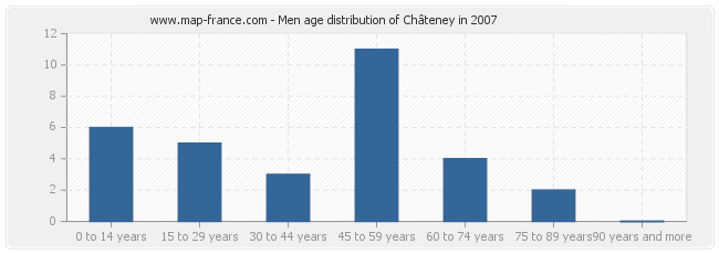 - Men inhabitants Châteney in 2007 were 31 - Women inhabitants in 2007 were 23
