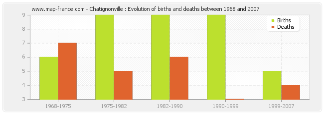 Chatignonville : evolution of births and deaths from 1968 to 2007