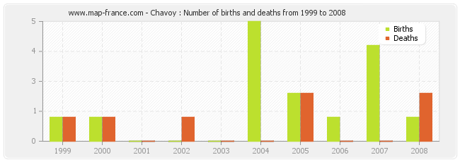 Chavoy : births and deaths from 1999 to 2008