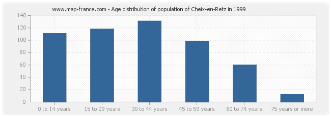 Distribution of the population of Cheix-en-Retz by age in 1999 :