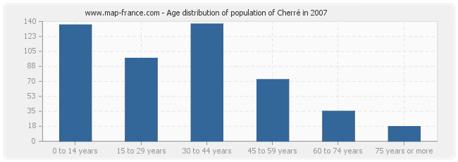 - Population of Cherré from 0 to 14 years : 136 inhabitants