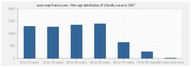Men population distribution of Chevilly-Larue by age in 2007 :