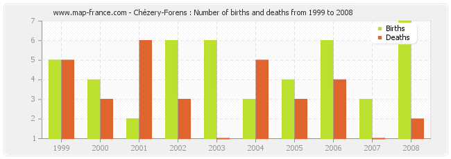 Chézery-Forens : births and deaths from 1999 to 2008