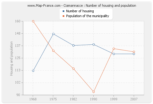 The number of housing of Ciamannacce was 129 in 2007, 129 in 1999, 138 in 1990, 137 in 1982, 148 in 1975 and 113 in 1968.
