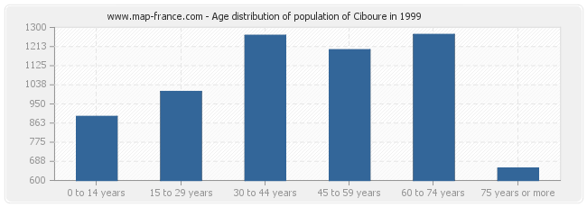 - Population of Ciboure from 60 to 74 years : 1 268 inhabitants