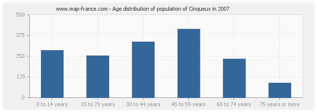 - Population of Cinqueux from 45 to 59 years : 413 inhabitants