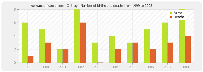 Population of Cintray was 403 inhabitants in 2007, 365 inhabitants in 1999, 375 inhabitants in 1990, 294 inhabitants in 1982, 277 inhabitants in 1975 and 319 inhabitants in 1968.