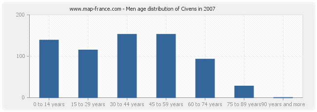 - Population of Civens from 60 to 74 years : 133 inhabitants