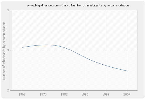 The number of inhabitants of Claix per housing was 2,48 in 2007.